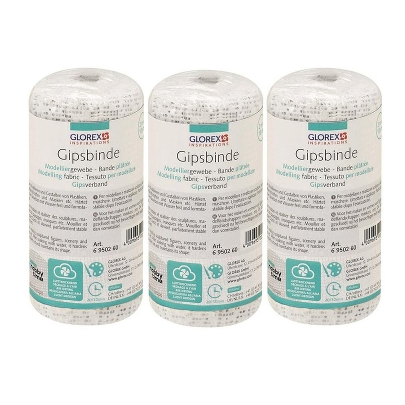3 rollen een rol huidvriendelijk gipsverband in het wit met een lengte van 2 meter. De hoogte is ca. 10 cm. Het verband is bijvoorbeeld zeer geschikt om een afdruk van een zwangere buik te maken.