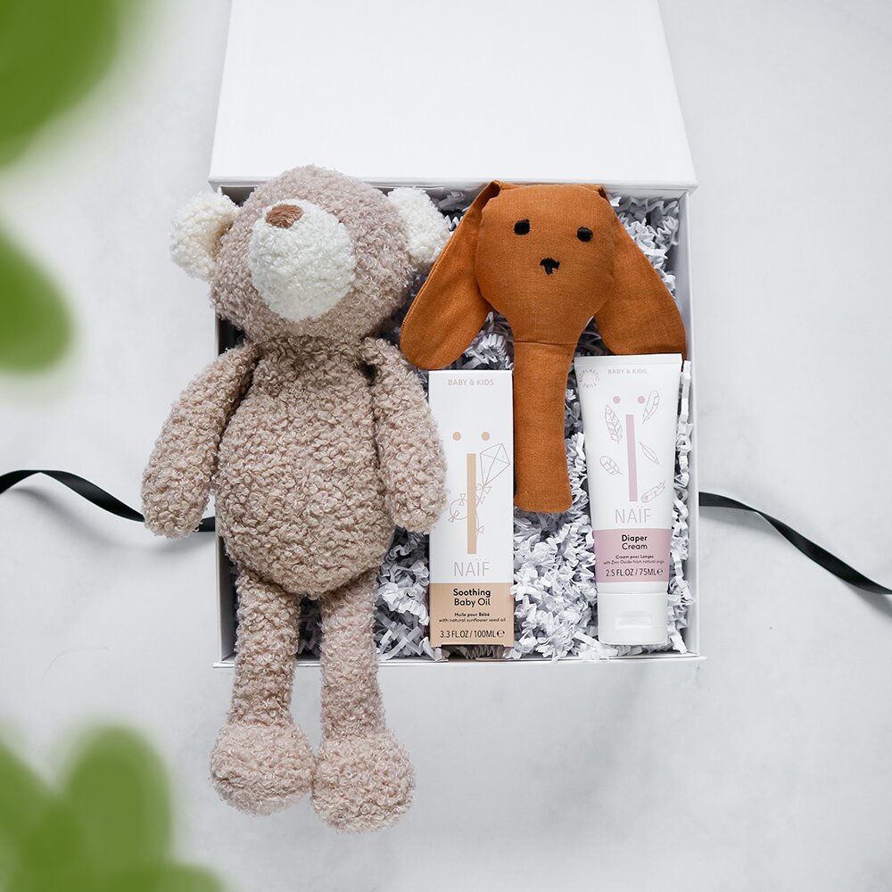 De Baby Box Cuddles is gevuld met handige én lieve producten om een nieuwe mama te verrassen! Dit zwangerschap cadeaupakket is uitermate geschikt als luxe kraamcadeau ter ere van de geboorte van een kleine. In dit cadeaupakket voor zwangeren vind je: Fluffy teddybeer knuffel – een lief maatje voor de kleine om mee te knuffelen. Ook wanneer ze al wat ouder zijn. Konijn rammelaar – de kleine kan met de rammelaar spelen en geluid maken, voor eindeloos speelplezier Naïf Soothing Baby Oil – geschikt voor baby massages. Verzorgt en hydrateert het lichaam. Naïf Diaper Cream – de Diaper Cream van Naïf helpt rode billetjes verzorgen en kalmeert de huid. Verpakt in een luxe magneetdoos met mooi lint. Nog leuker? Neem er een Good4fun cadeaukaart bij. Fun om te geven en krijgen! Kies uit een bedrag tussen de 10 en 150 euro. Circuit rijden, parfum, apart uitgaan en eten, unieke overnachtingen, sieraden, fashion en alle fun die er is. Online shoppen en te besteden bij fun mogelijkheden. De Good4fun giftcard. Heel simpel, veilig en origineel. De Good4fun giftcard is fun voor Nederlanders en te besteden bij Nederlandse fun bestedingsmogelijkheden. Kies ervoor om hem per mail te ontvangen of per post op je eigen adres of laat hem ergens anders bezorgen. Laat je de giftcard per post versturen dan krijg je hier een leuke cadeauverpakking bij.