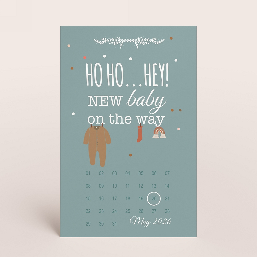 Met dit originele kerstkaartje met zwangerschapsaankondiging komen jullie familie en vrienden te weten dat jullie een kindje verwachten, hoe leuk! Personaliseer het kaartje met jullie prachtige nieuws, kies je favoriete kleur, pas de kalender aan naar de juiste datum en iedereen kan mee aftellen naar de geboorte van jullie kleintje.
