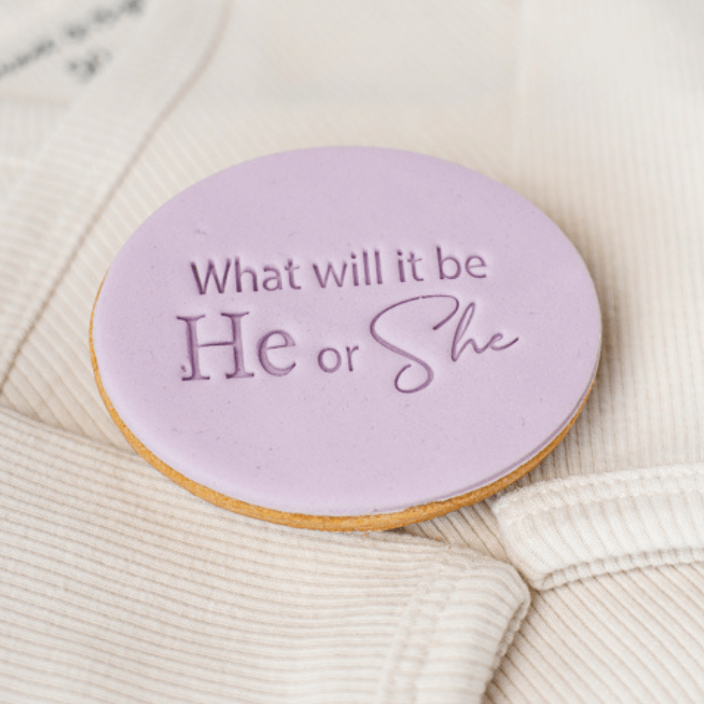 Het is zover, je bent zwanger en bijna door de eerste onzekere weken heen. Tijd voor een gender reveal feestje! En daar mag deze koekstempel natuurlijk niet bij ontbreken. Is hij niet schattig? Op de foto zie je de stempel gecombineerd met onze ovaal 7cm steker, maar hij is natuurlijk ook super leuk op een rond, hartvormig of zeshoek vormig koekje.
