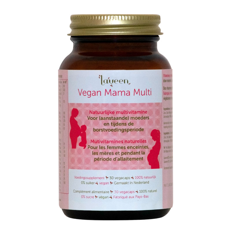 Laveen Vegan Mama MultiDit natuurlijke voedingssupplement is speciaal ontwikkeld voor (aanstaande) moeders en het eerste jaar na de geboorte van hun kindje. De toegevoegde mineralen en vitamines ondersteunen het lichaam tijdens de zwangerschap, het herstel hiervan en de borstvoedingsperiode. In Laveen Vegan Mama Multi vind je actief foliumzuur, ook wel folaat genoemd. Dit ondersteunt de aanmaak van witte en rode bloedcellen en is een stuk effectiever dan normaal foliumzuur. En zoals de naam al doet vermoeden is het volledig vegan.Andere ingrediënten zijn bijvoorbeeld jodium (om de groei van je kindje te ondersteunen), vitamine B12 en betacaroteen. Betacaroteen kan door het lichaam, naar behoefte, worden omgezet in vitamine A. Het is belangrijk dat er niet gewoon vitamine A inzit, want dit kan de kans op aangeboren afwijkingen vergroten.Deze vitaminetabletten zijn volledig gemaakt van natuurlijke ingrediënten en bevatten geen suikers, kleur- of geurstoffen, smaakversterkers of andere chemische toevoegingen. En als extra duurzaam punt: alles is ontwikkeld en geproduceerd in Nederland! Ook de verpakking is duurzaam. Het wordt geleverd in een milieuvriendelijk glazen potje.Een pot bevat 30 tabletten. Dagelijks is 1 tablet voldoende.Over LaveenHet verhaal rondom dit Nederlandse merk begint bij de zwangerschap van een liefdevolle en gedreven moeder. Toen zij zwanger was van haar eerste kindje, wilde ze haar kindje natuurlijke vitamines en voedingsstoffen geven. Maar het was niet eenvoudig om voedingssupplementen zonder chemische stoffen of toegevoegde suikers te vinden, dus besloot ze die zelf samen te stellen. De voedingssupplementen zijn ontwikkeld met maar één doel voor ogen: de gezondheid van gezinnen ondersteunen op een 100% natuurlijke manier.