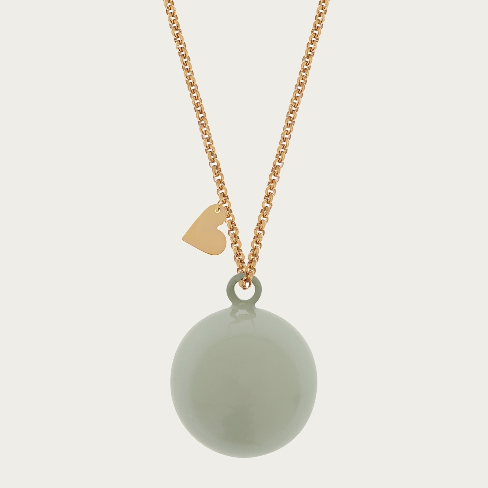 Ballchain Babybel Feline Grijs/mint is een lange Goudkleurige stalen zwangerschapsketting met een gladde bal met een fijn tinkel geluid. Deze bola ketting laat zien dat je zwanger bent en voor de baby in jouw buik is het een rustgevend geluid.