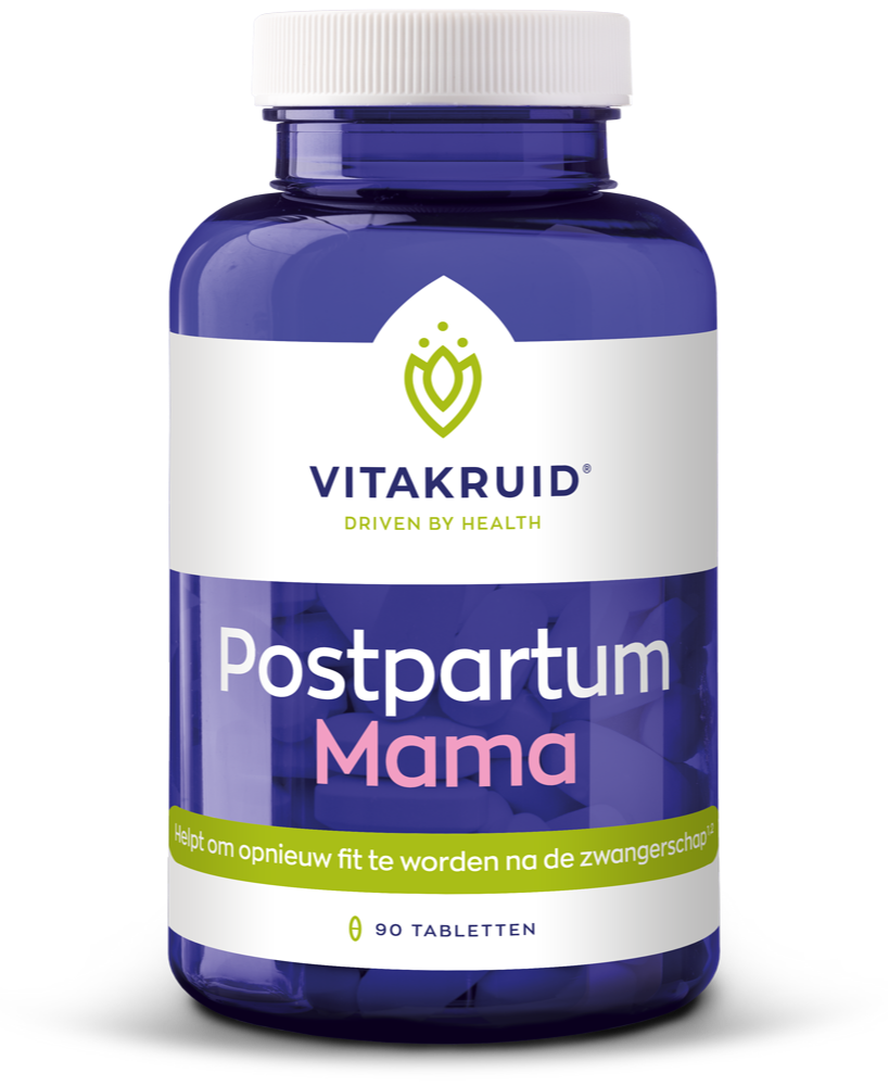 Vitakruid Postpartum Mama Tabletten (90 stuks) is een complete formule voor moeders om opnieuw fit te worden na de zwangerschap. IJzer, jodium, magnesium, vitamine B12 en vitamine C ondersteunen het energieniveau. Fenegriek ondersteunt de melkproductie na de